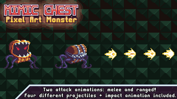 With a variety of fluid, high-quality animations, the monsters in the Mimic Chest asset pack are ready to give your players an unpleasant surprise! There are two mimic chest color themes, 12 character animations, and 5 effect animations total.