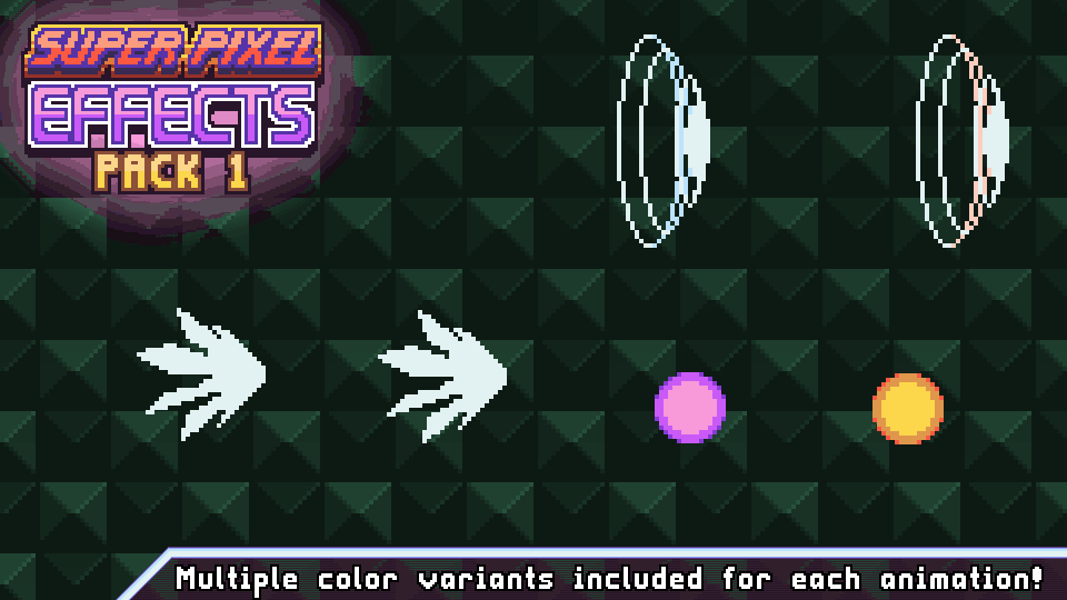 Hey everyone, it's been a while! I'm very happy to be back doing pixel art regularly. Super Pixel Effects Pack 1 is the first of many new and awesome assets that I have planned!
