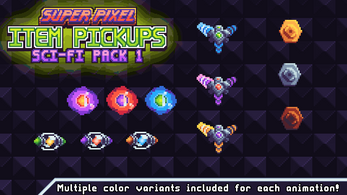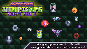 This asset pack includes 12 pixel art sci-fi themed collectible item pickups. Each item comes in multiple color themes! Bring your game to life with nuts, bolts, energy canisters, and more!