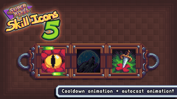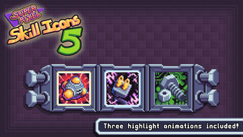This asset pack includes 30 pixel art skill icon types with a resolution of 32x32. Each icon type comes in three versions to represent leveled up skills. That's 90 icons in all! Two styles of HUD elements are included, and are adjustable to accommodate any amount of icons. Autocast, cooldown, and icon highlight animations are also included!